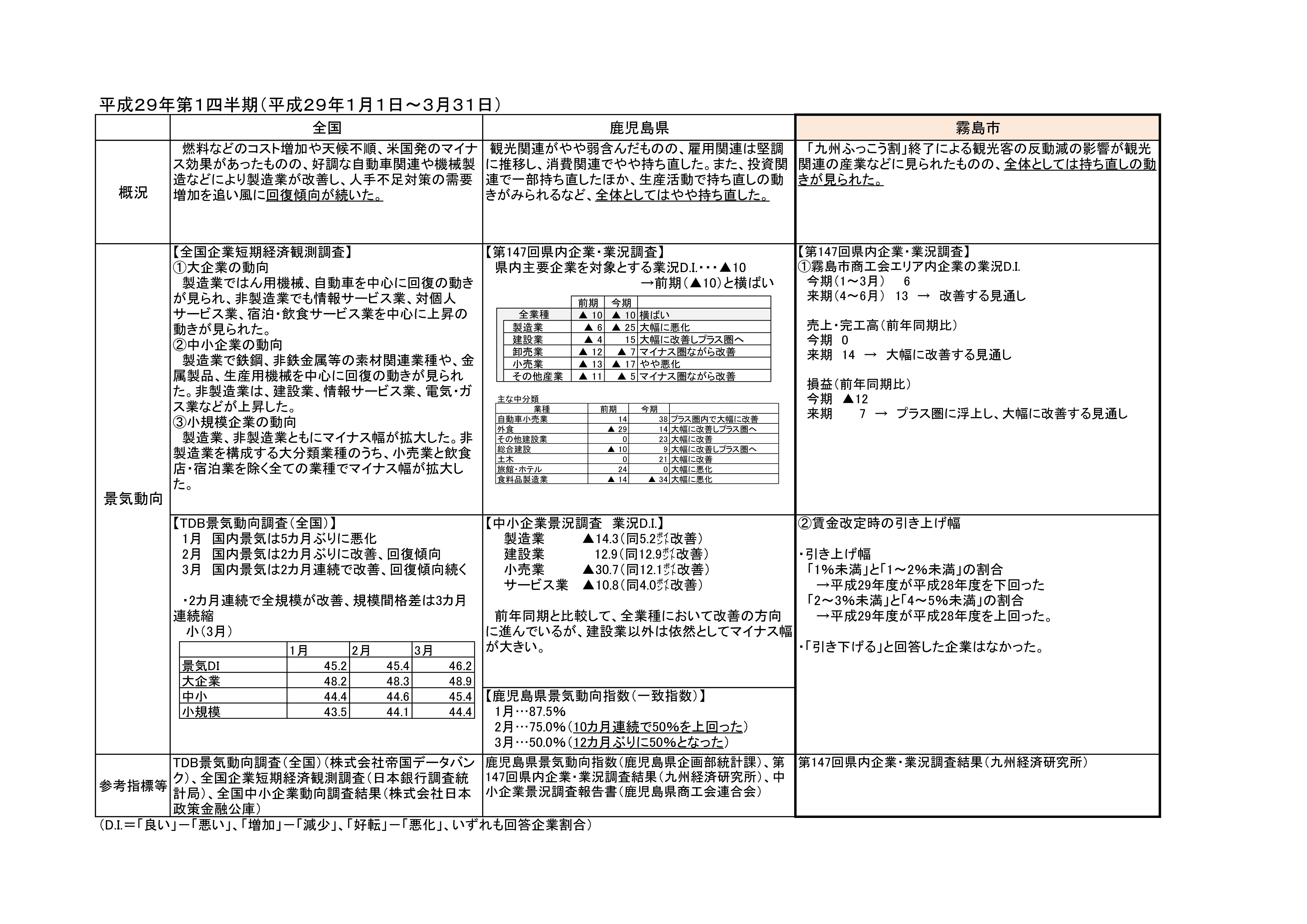 霧島市の経済動向調査【平成29年1~3月期】 詳細についてはこちらから