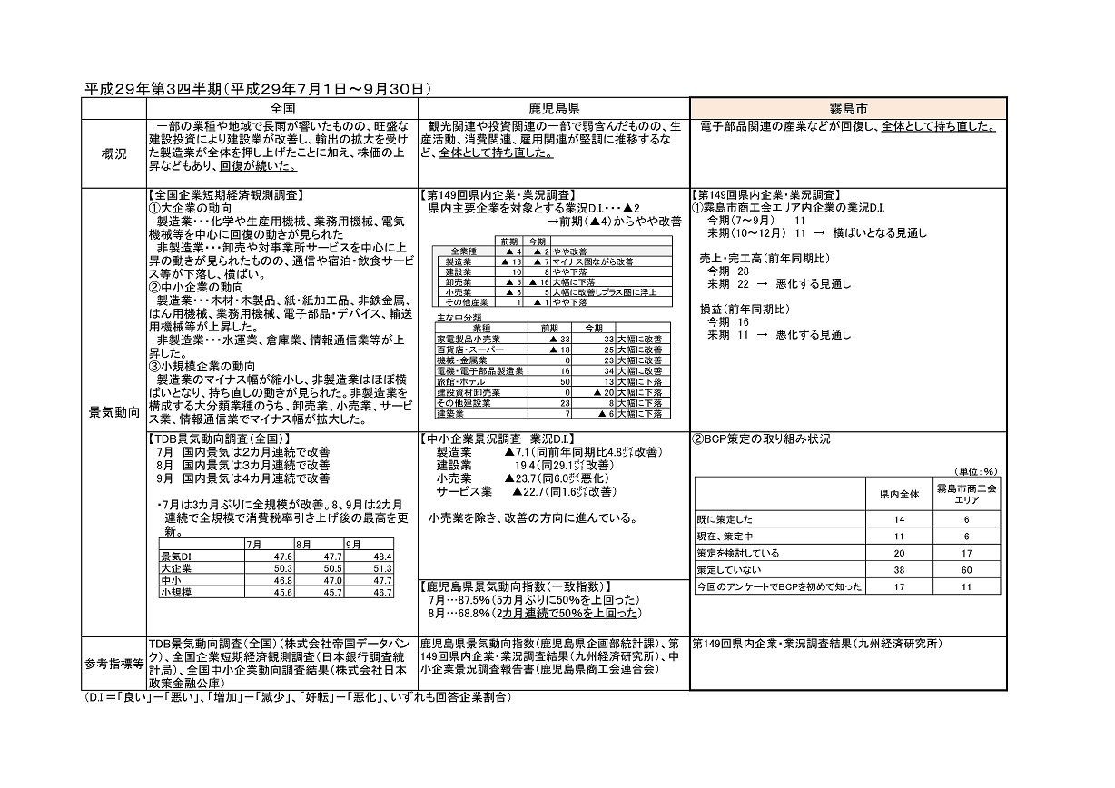 霧島市の経済動向調査【平成29年4~6月期】 詳細についてはこちらから