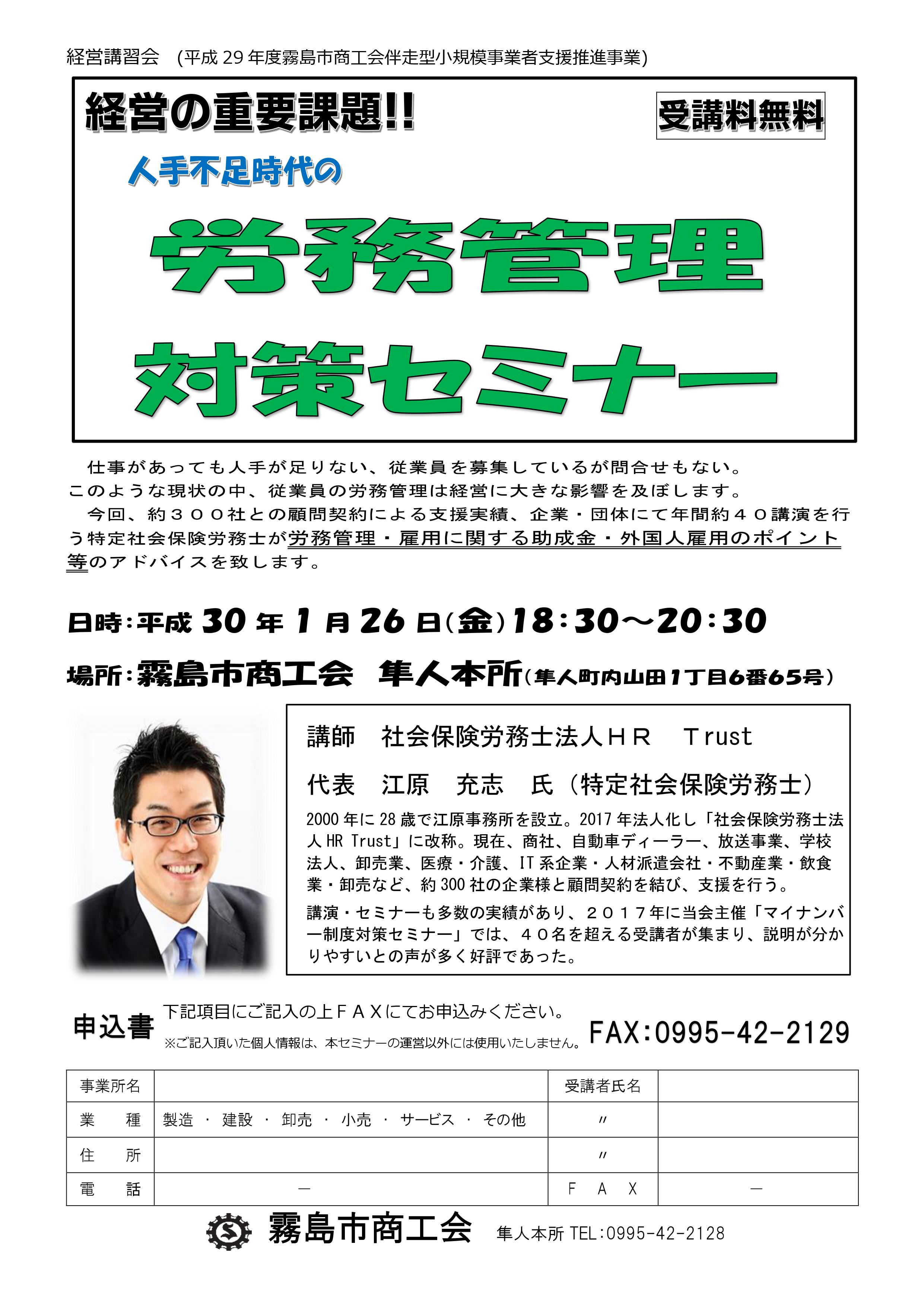 経営の重大課題として、従業員の労務管理があげられます。今回、特定社会保険労務士 江原充志氏を講師にお願いして、労務管理・雇用に関する助成金・外国人雇用のポイントをテーマに講習会を開催致します。受講をご希望の方は、添付資料にてFAXにてお申込みください。
