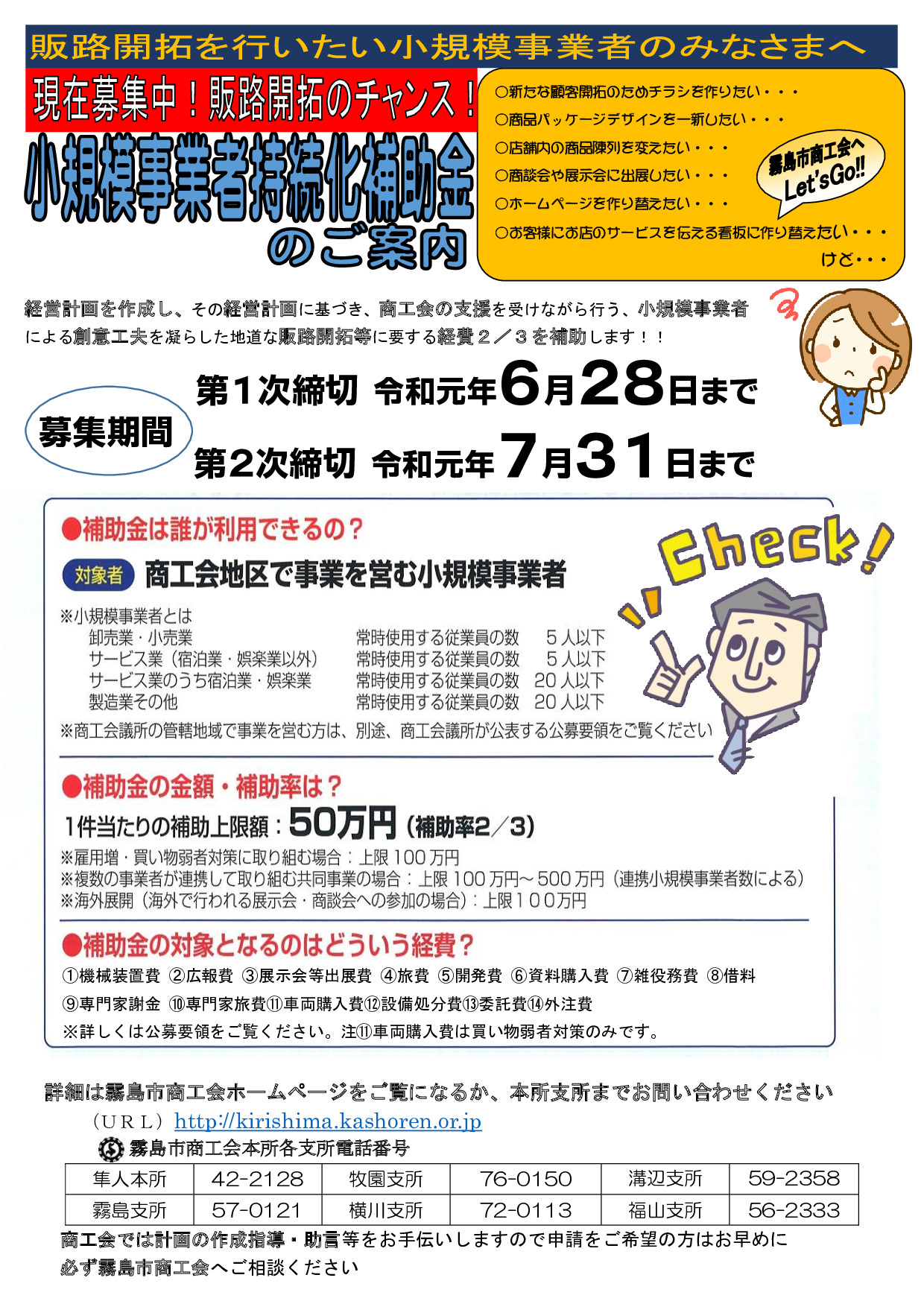 申請希望の方はできるだけ早めに霧島市商工会本所、各支所までご連絡ください。