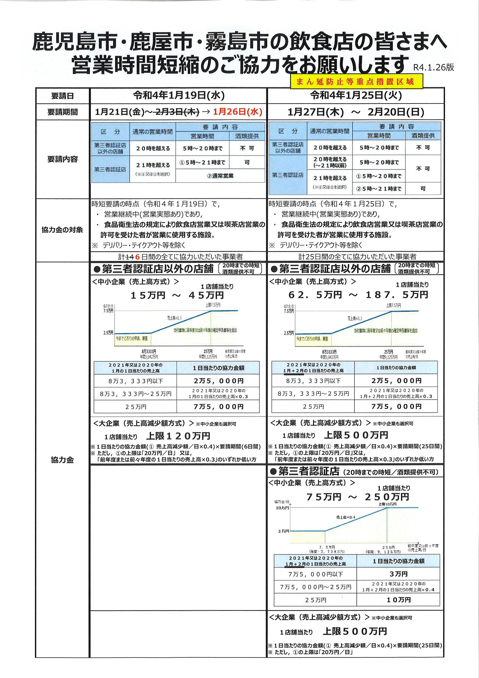 霧島市の飲食店に対する営業時間の短縮要請及び協力金について