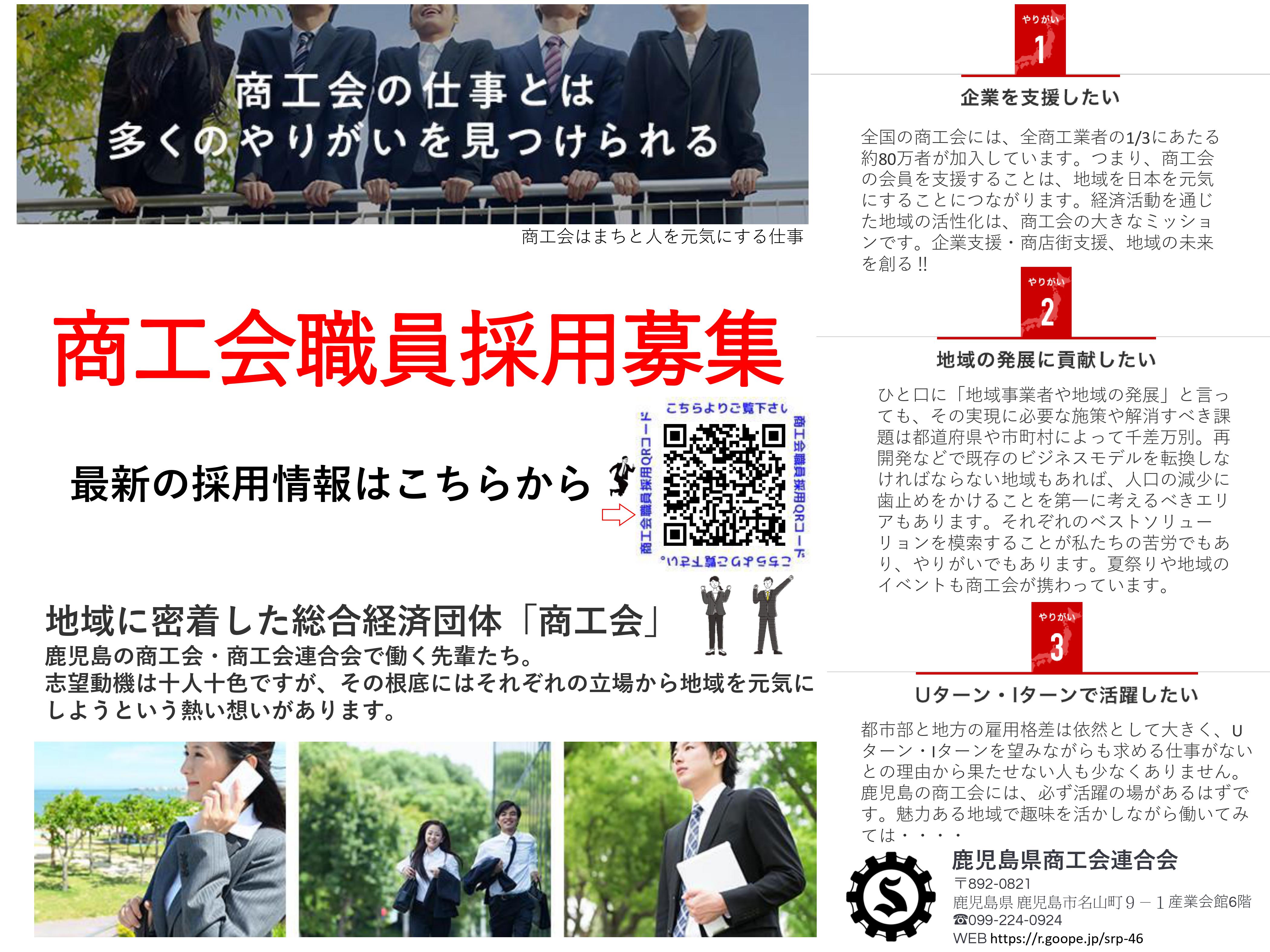 鹿児島県商工会連合会では、令和6年4月1日付採用予定の経営指導員・経営支援員採用を募集しています。