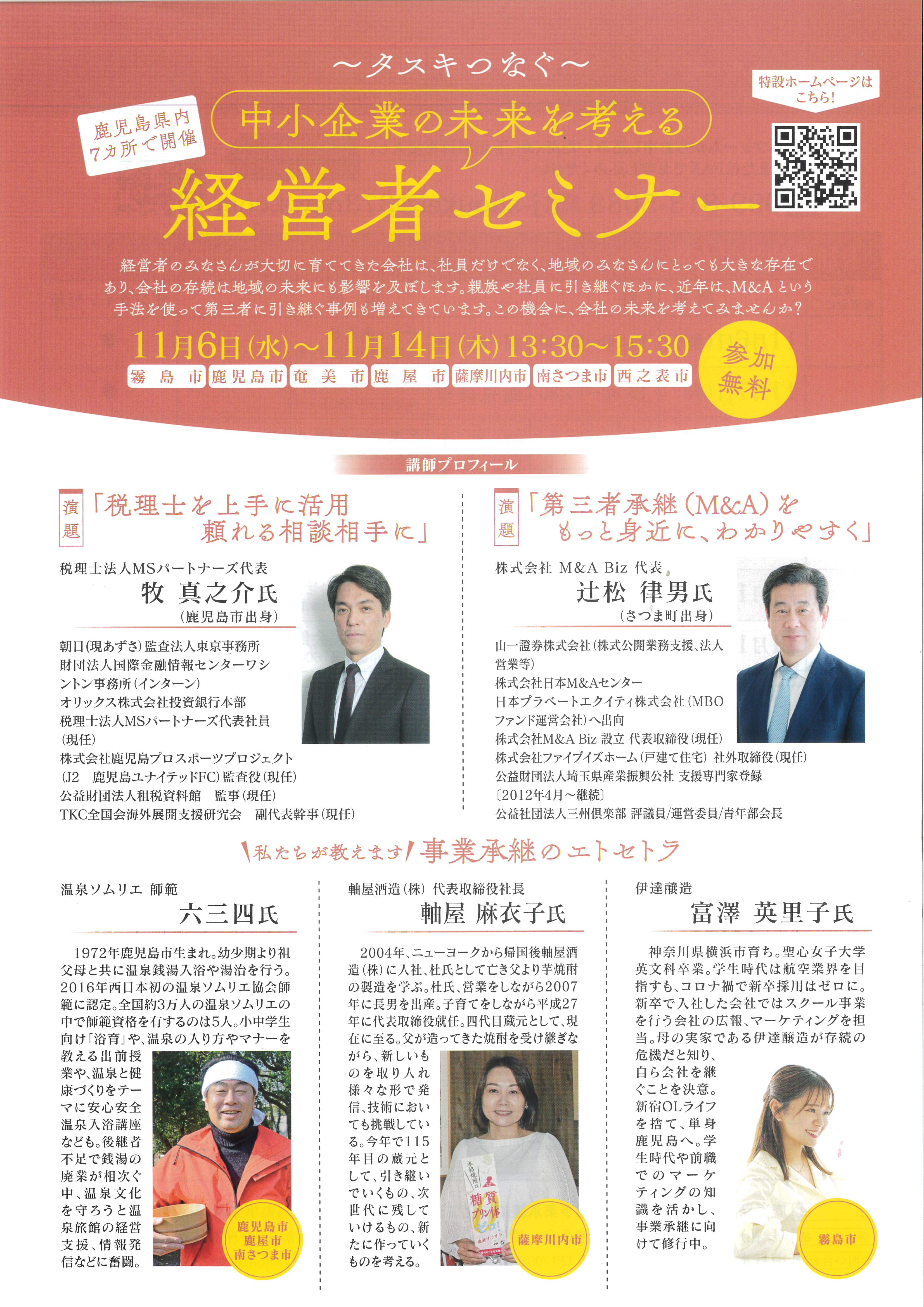 中小企業の未来を考える「経営者セミナー」を鹿児島県内7か所で開催いたします