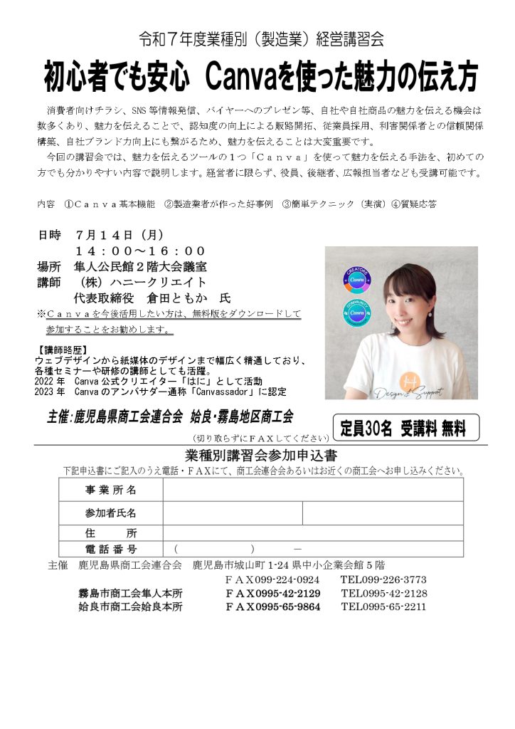 7月14日(月)14時~16時、隼人公民館2階大会議室にて「初心者でも安心 Canvaを使った魅力の伝え方」の講習会を開催します。